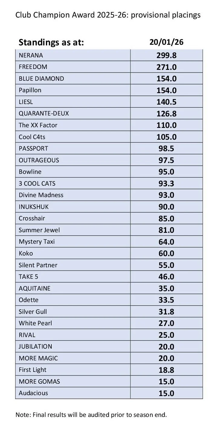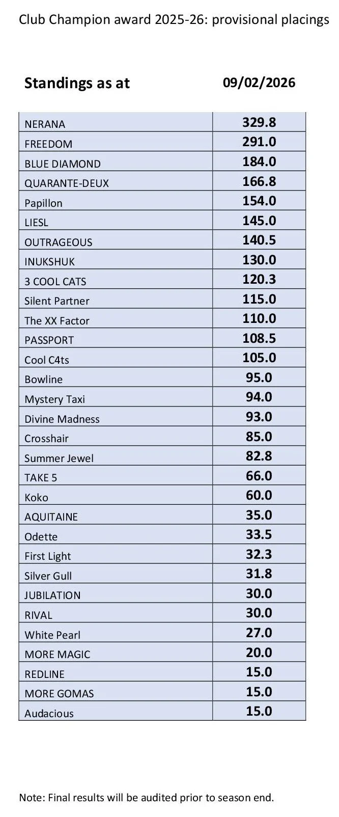 We were pleased to award our 2024/2025 Season Club Champion to Nerana, Skippered by Chris Perry.